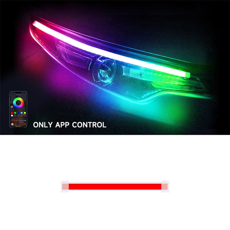Transform your vehicle with our RGB Flowing Turn Signal LED Light Strip, designed for universal car models and powered by smart APP Bluetooth control. This high-brightness ambient light strip delivers smooth chasing effects, dynamic turn signals, gradient colors, and eye-catching lighting animations. Ideal for car exterior styling, daytime visibility, and night driving ambience.