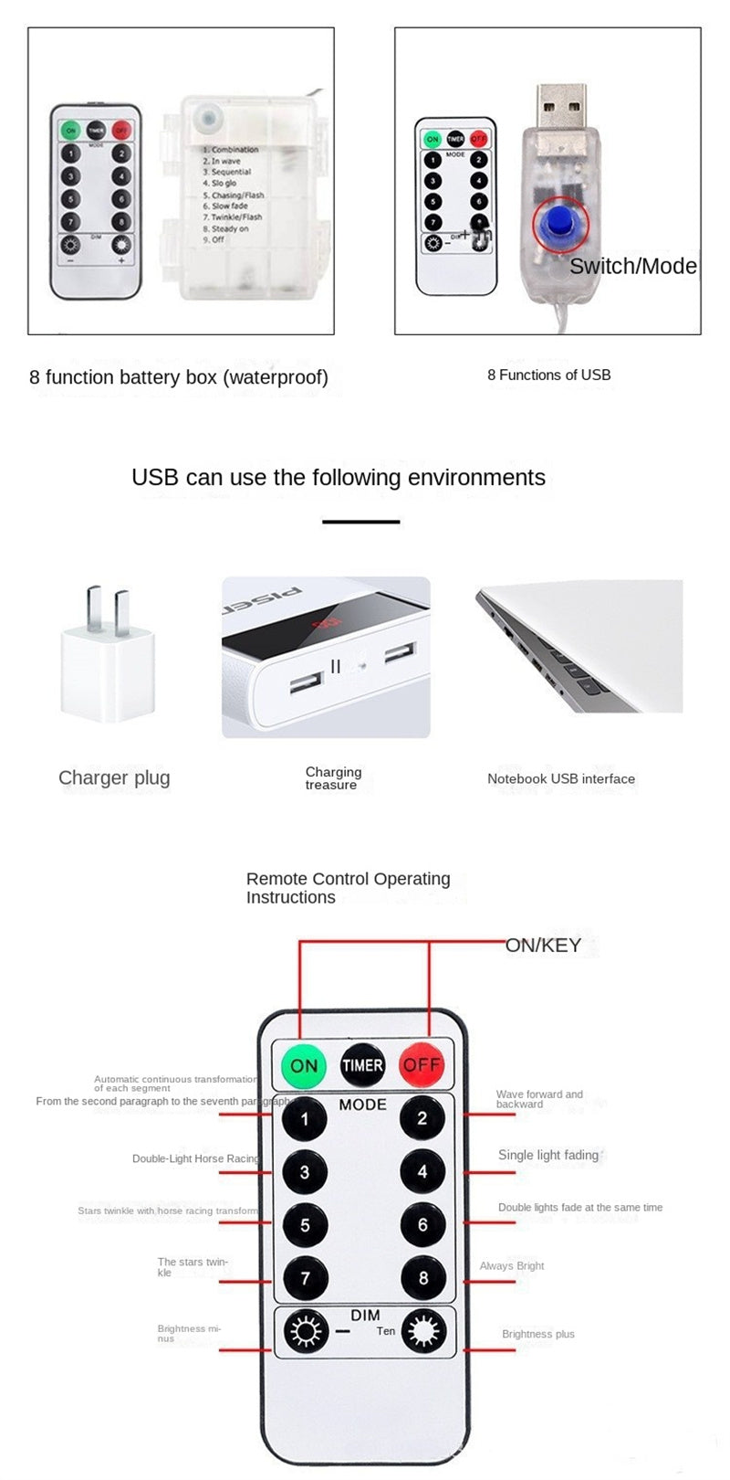 • 💡 8 Lighting Effects: Choose from steady, flash, fade, twinkle, wave, slow-glow, and more.